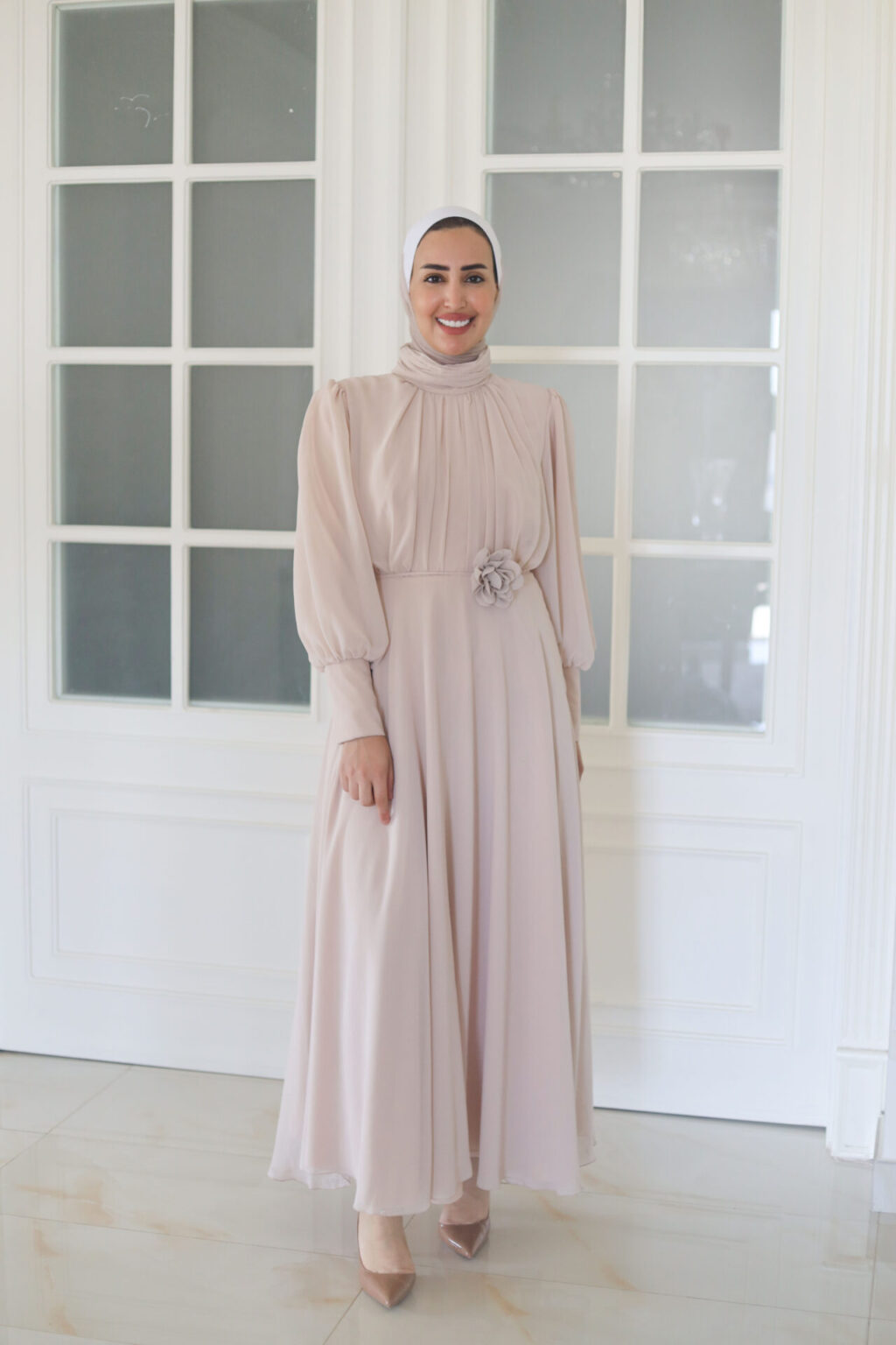 فستان رسمي مع حركة عند منطقة الصدر مع حزام