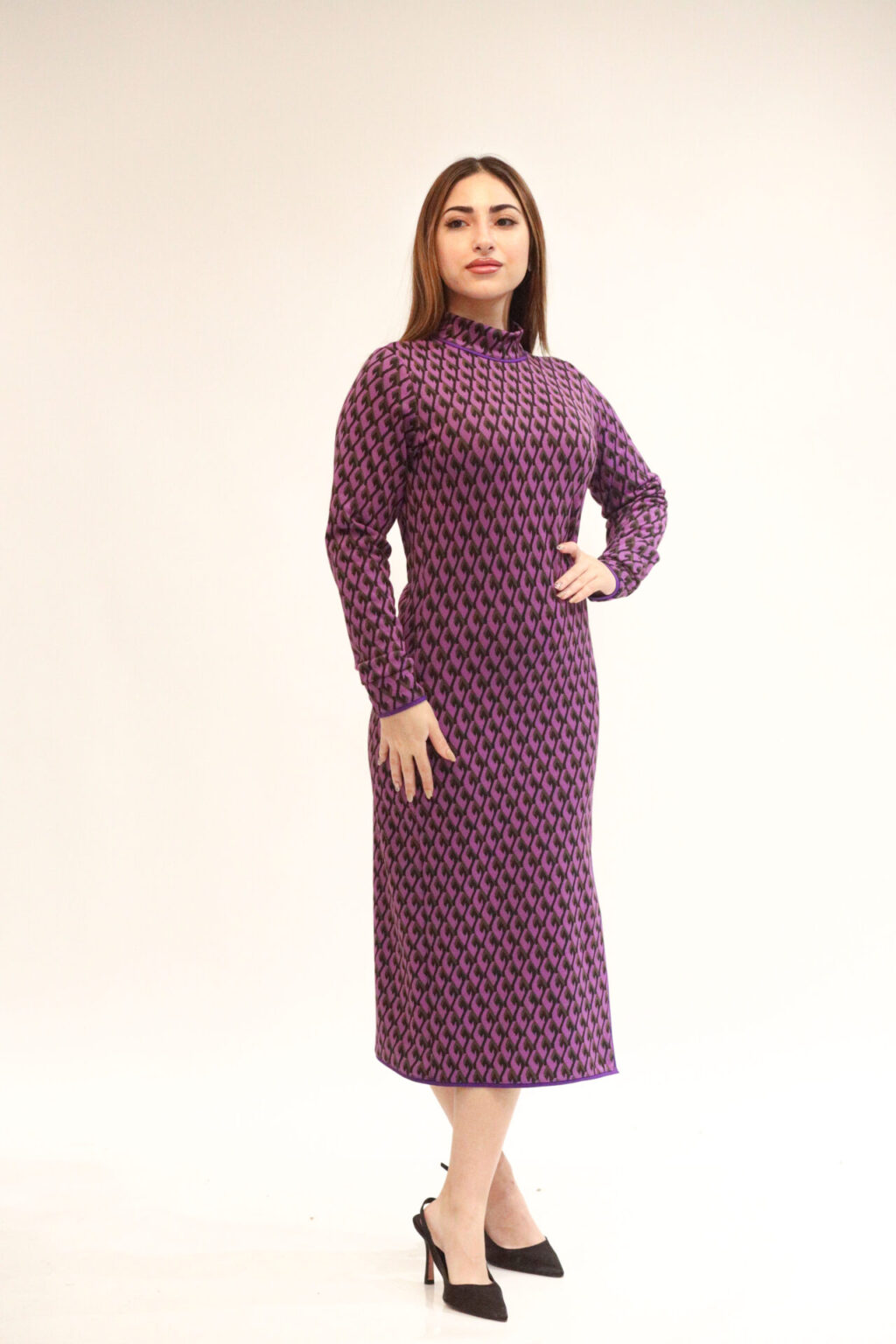 فستان صوف مفتوح الجانب ، قبة عالية